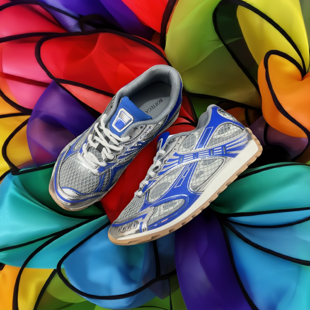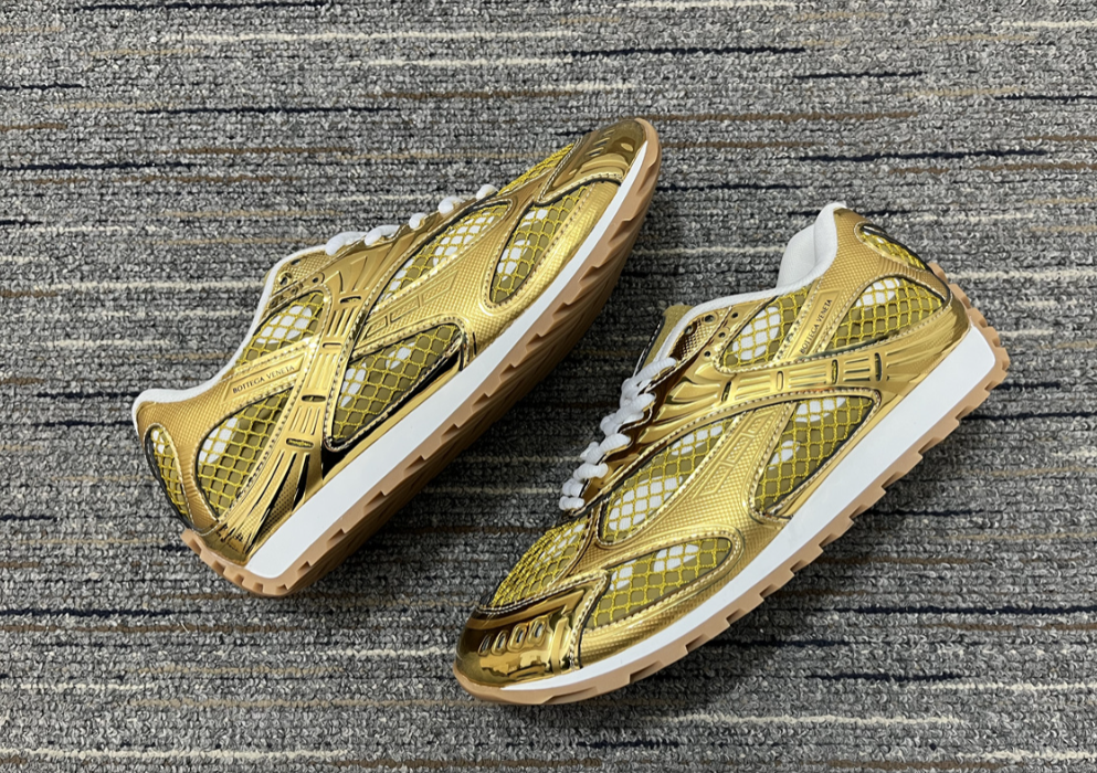 Step into luxury with the Bottega Veneta Orbit Sneakers in eye-catching metallic gold. These designer runners combine a futuristic silhouette with premium craftsmanship. Featuring a breathable mesh base, glossy gold overlays, and a durable gum sole, they offer bold style and everyday comfort.